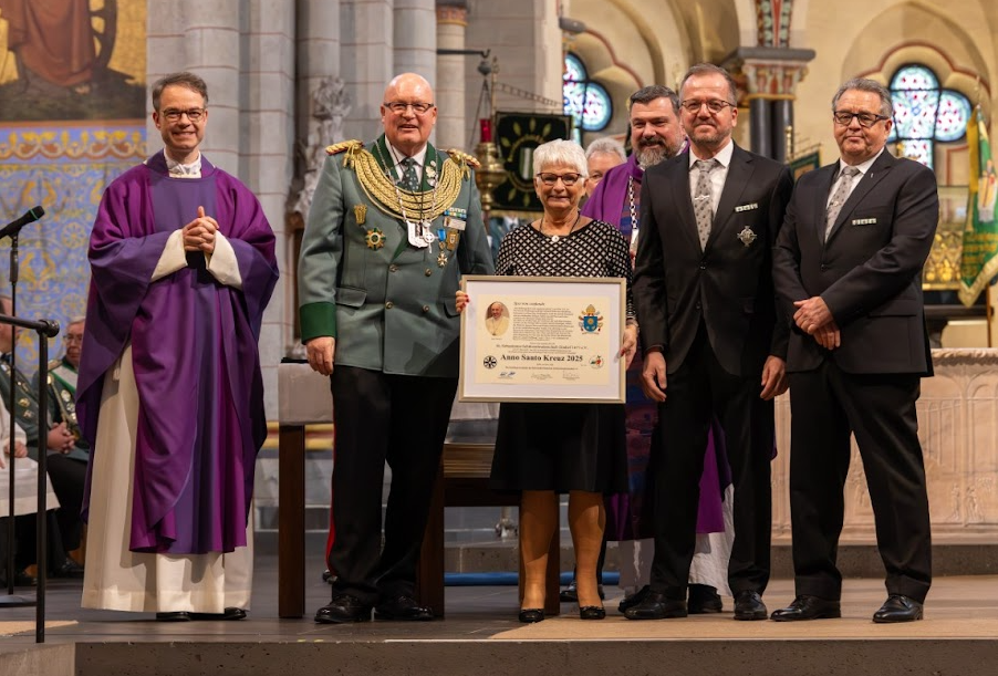 In St. Qui­rin in Neuss wur­den durch den Bun­des­ver­band der Deut­schen His­to­ri­schen Schüt­zen­bru­der­schaf­ten und den Diö­ze­san­ver­band der Bru­der­schaf­ten des Erz­bis­tums Köln 27 Bru­der­schaf­ten aus dem Erz­bis­tum Köln aus­ge­zeich­net, die im hei­li­gen Jahr an einer Rom­wall­fahrt teil­ge­nom­men haben.